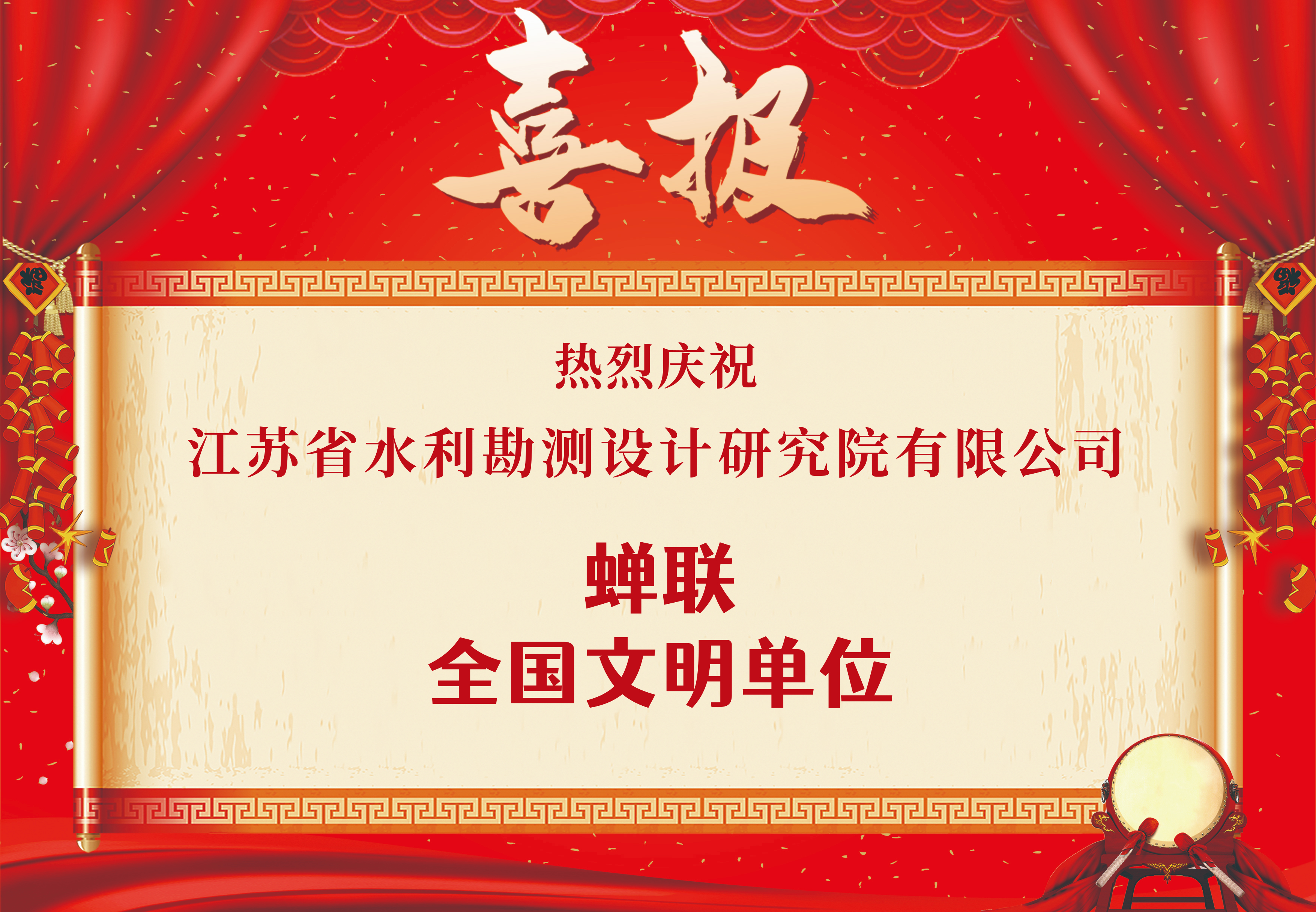 喜報!公司蟬聯“全國文明單位” 榮譽稱號